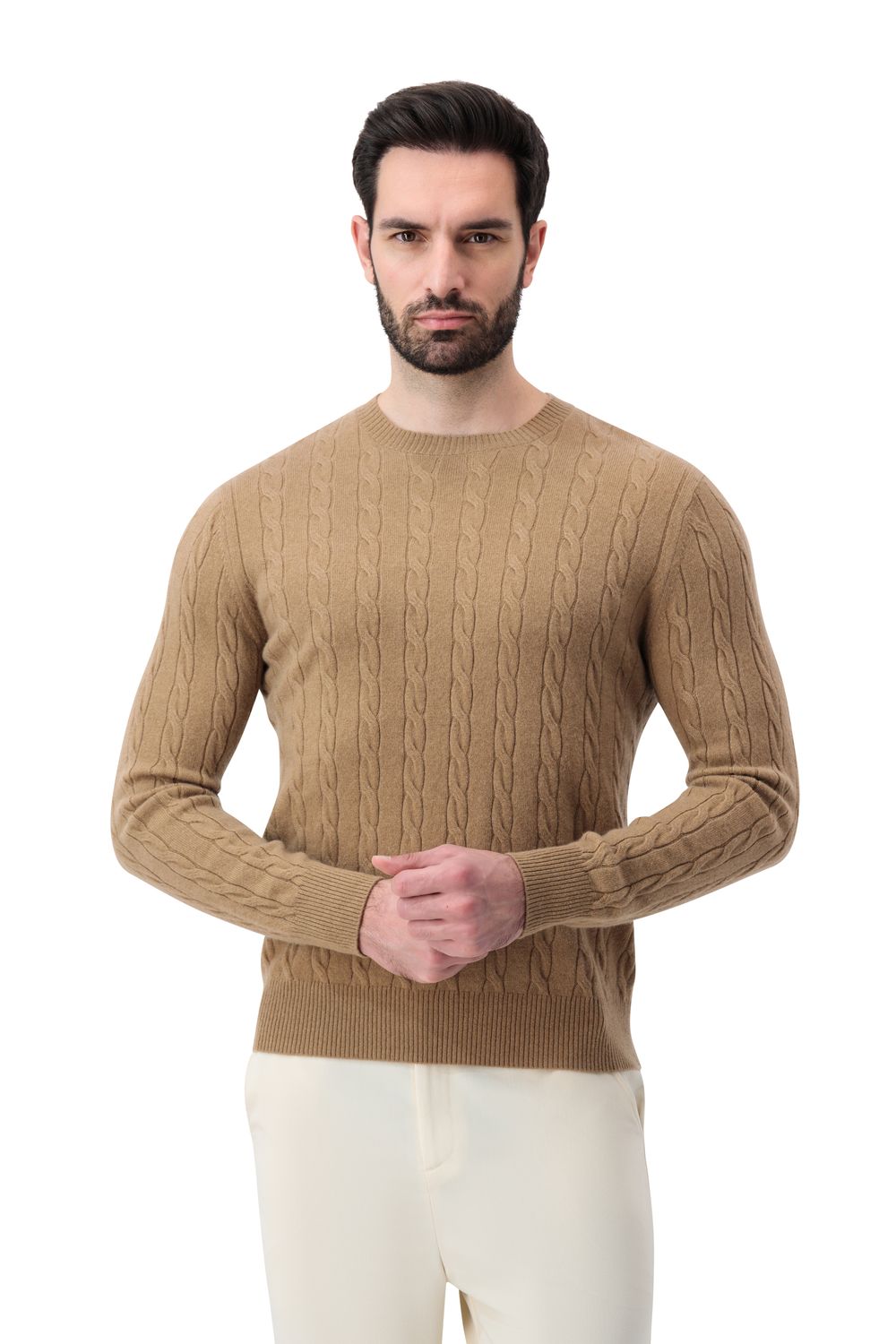 بلوفر كشمير برقبة دائرية - كريمي