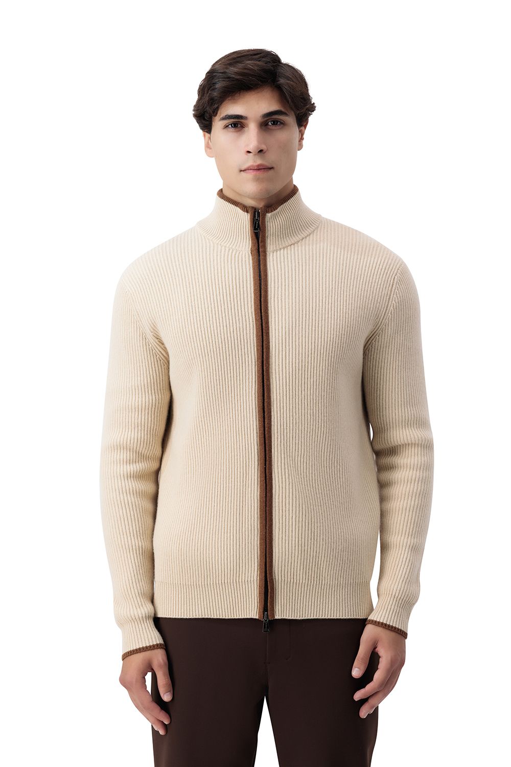 بلوفر صوف ميرينو بسحاب كامل - بني غامق