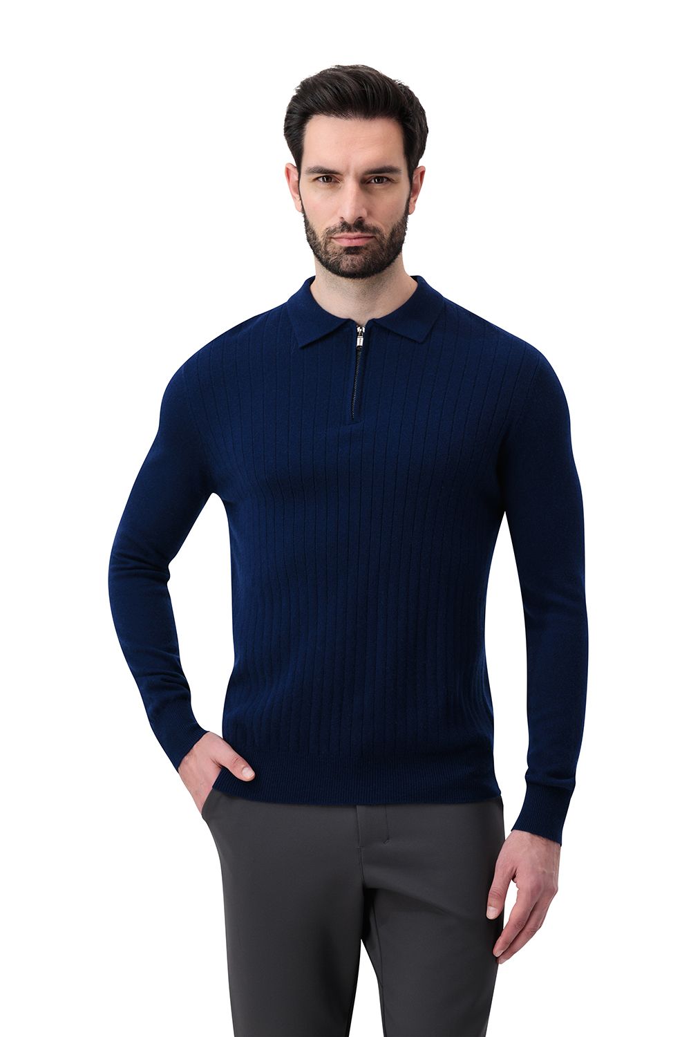 بلوفر صوف ميرينو بنص سحاب - بلوفر فاخر بتصميم كلاسيكي يدوم.