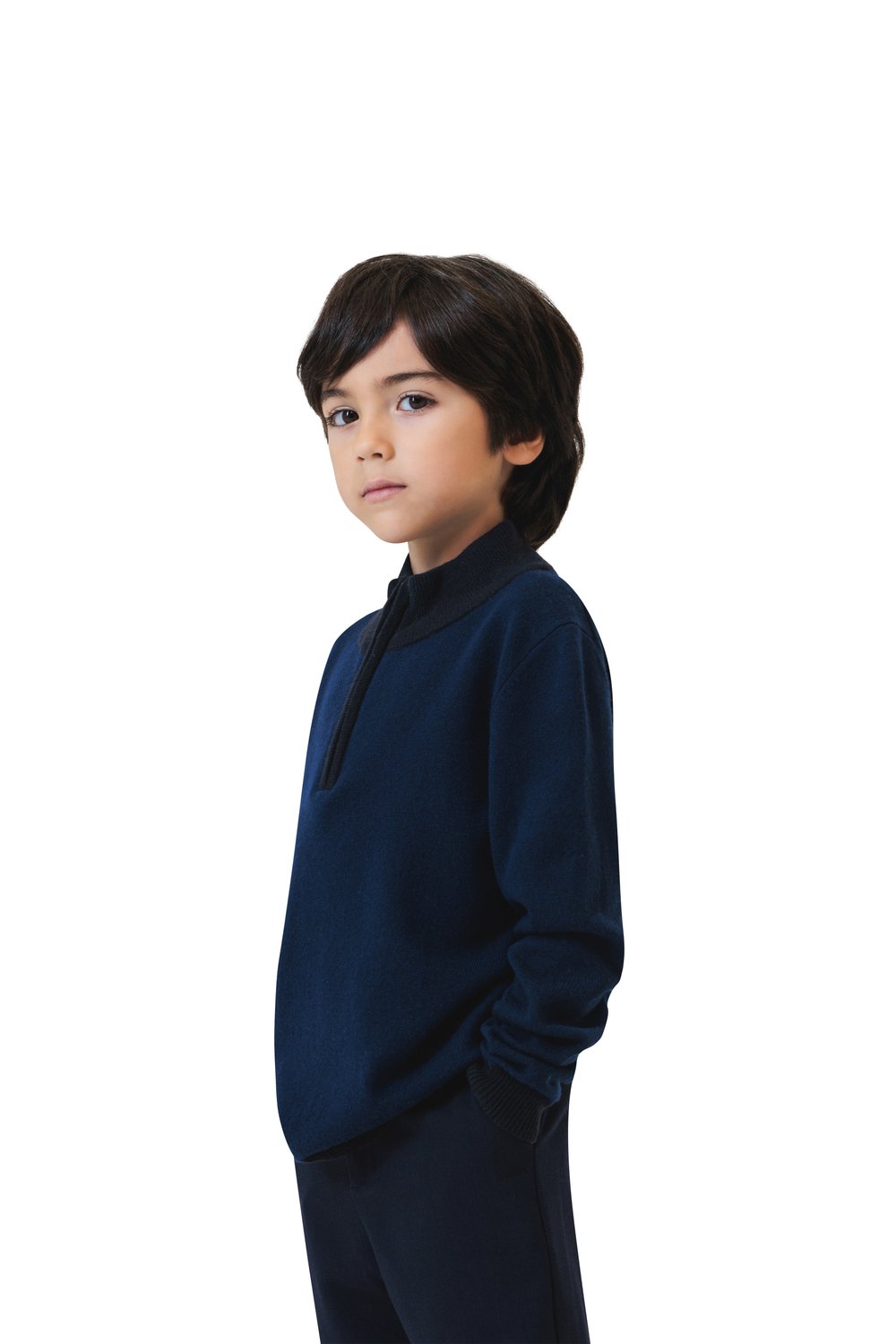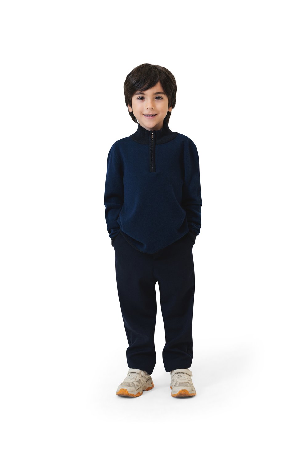 بلوفر أطفال صوف ميرينو بنص سحاب - كحلي