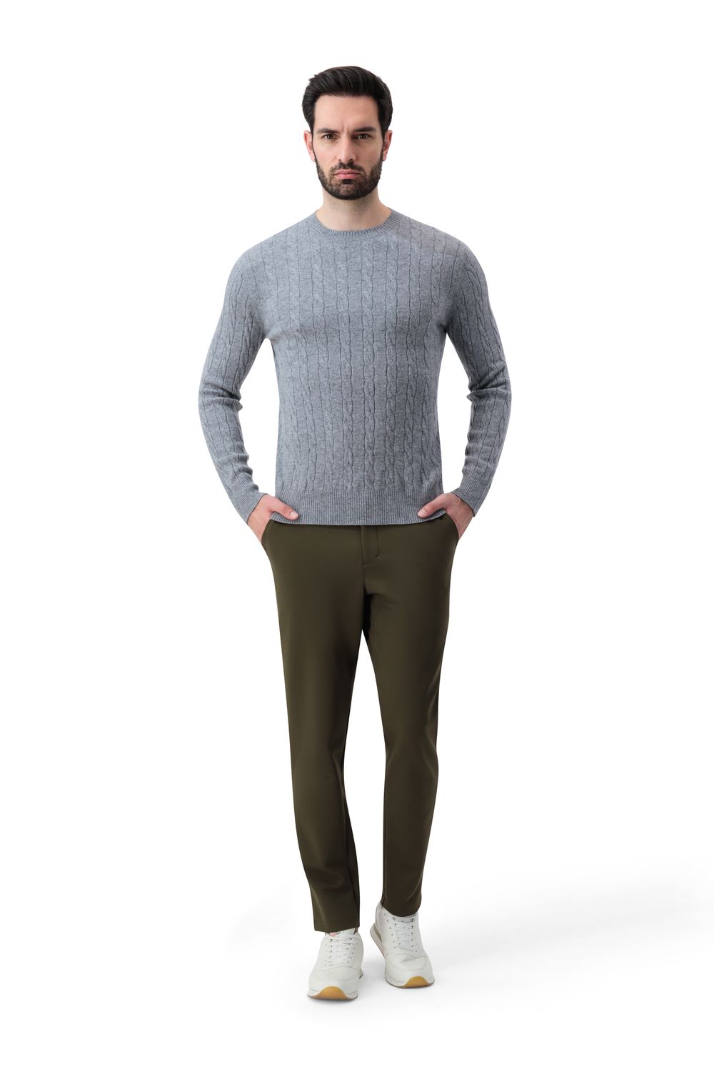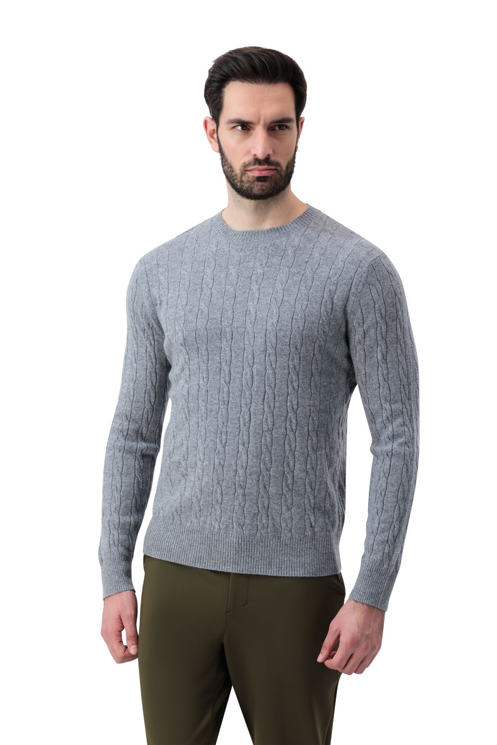 بلوفر كشمير برقبة دائرية - رمادي