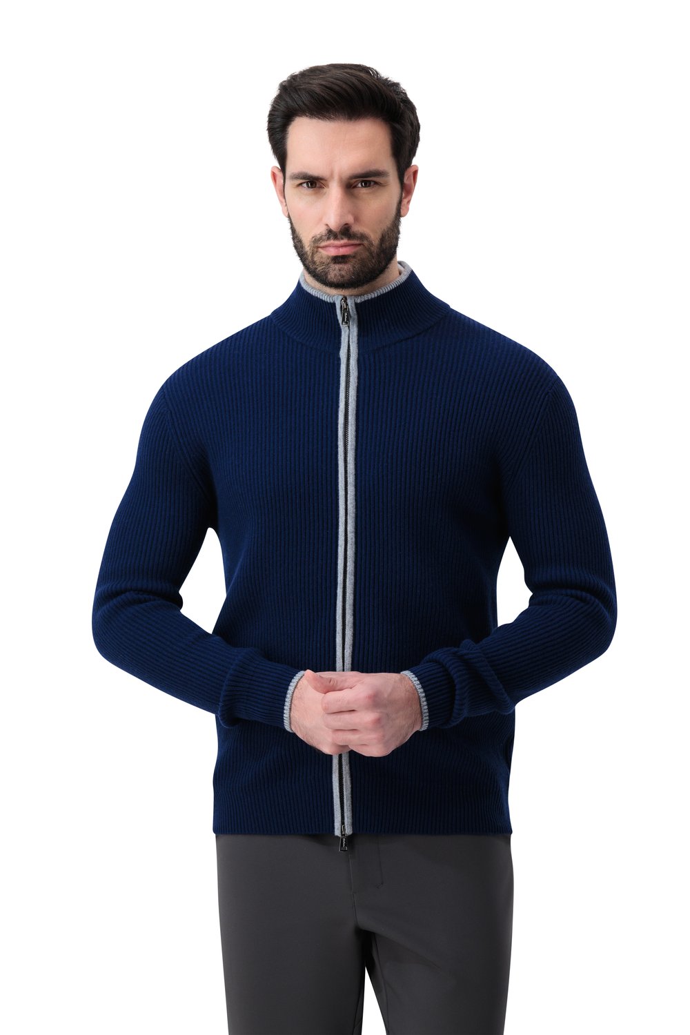 بلوفر صوف ميرينو بسحاب كامل - كحلي