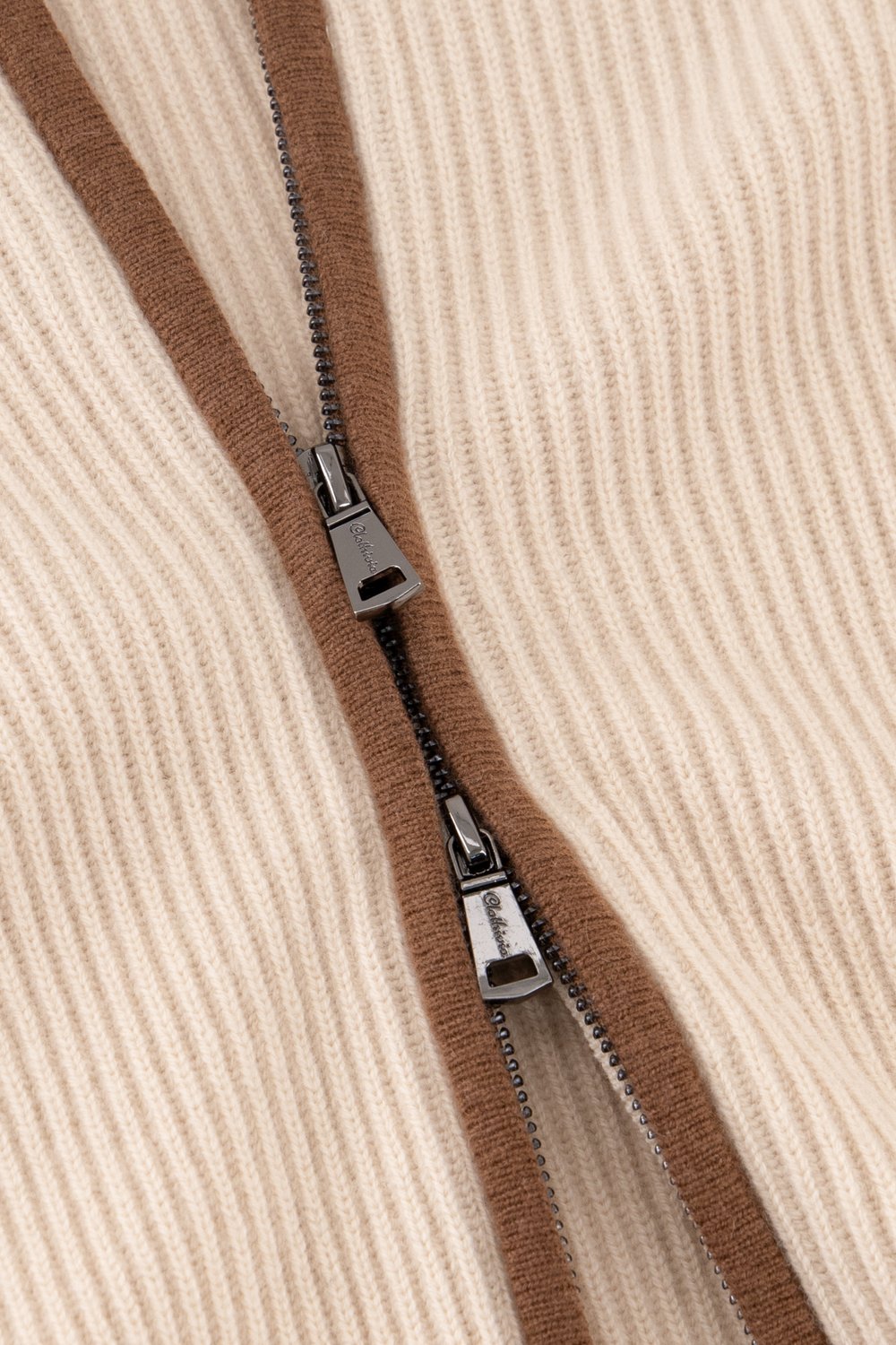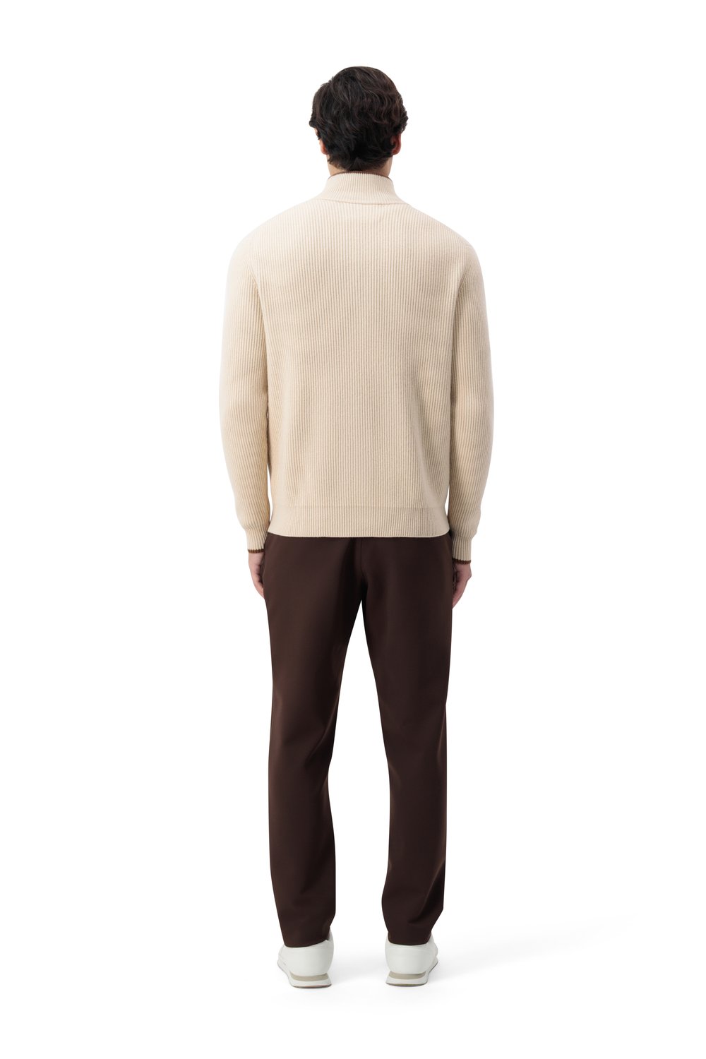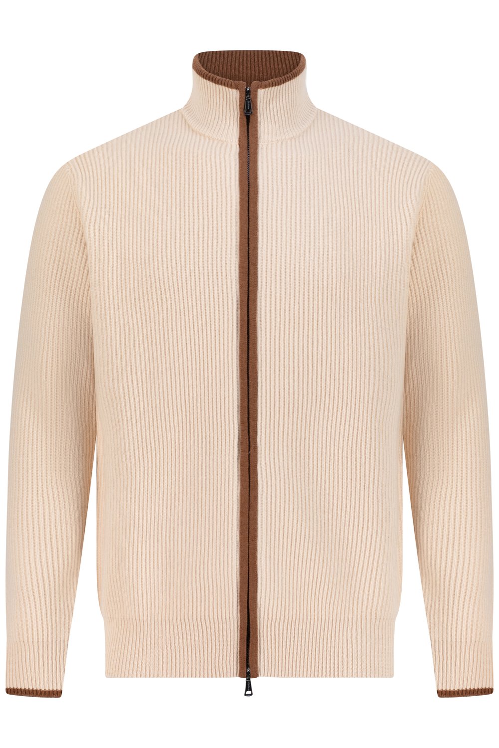 بلوفر صوف ميرينو بسحاب كامل - كريمي بيج