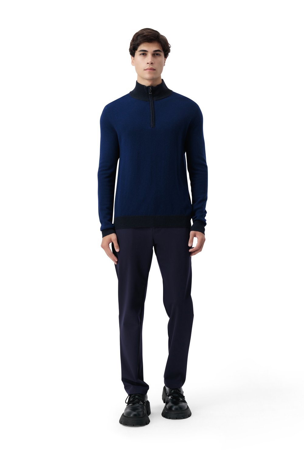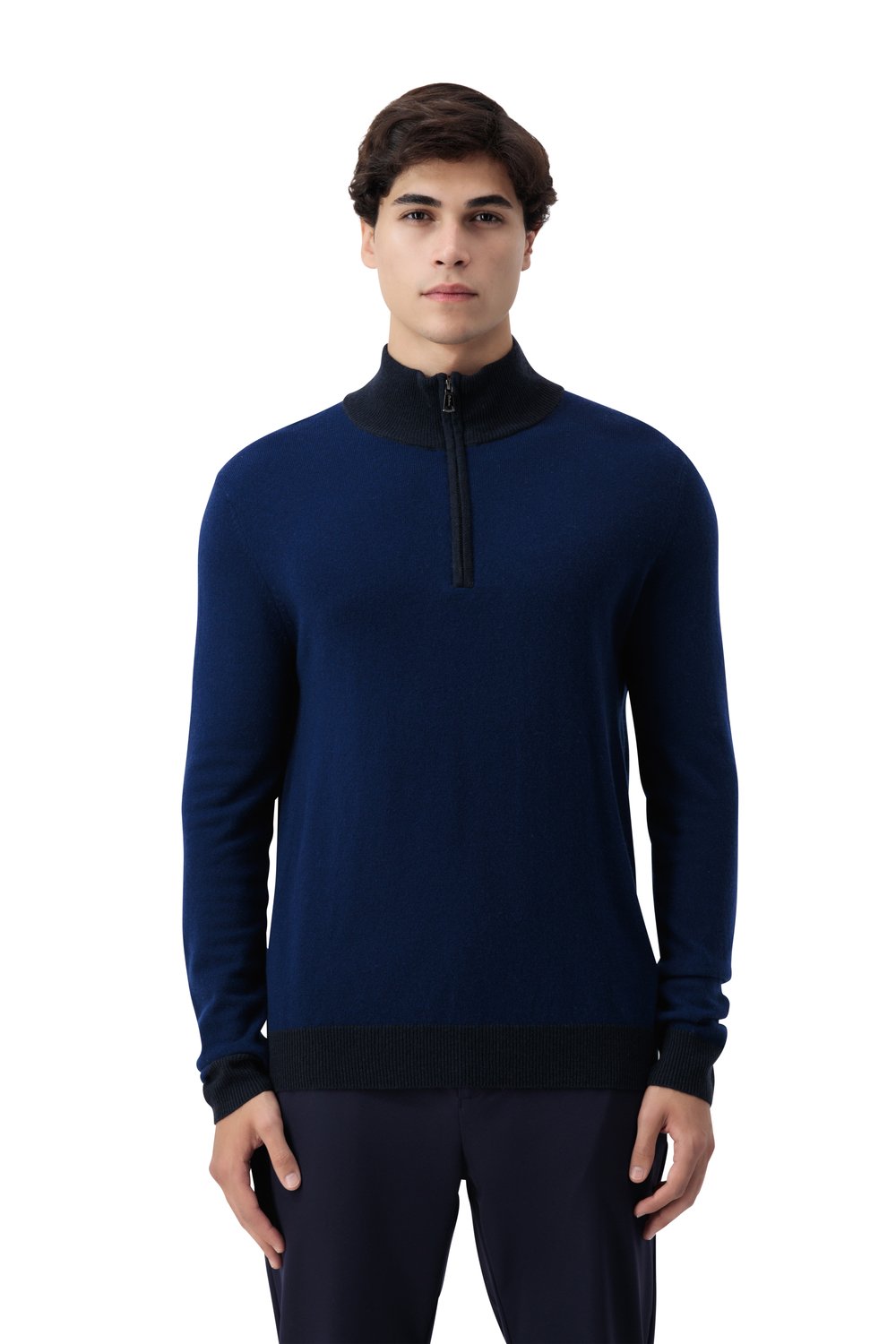 بلوفر صوف ميرينو بنص سحاب - كحلي